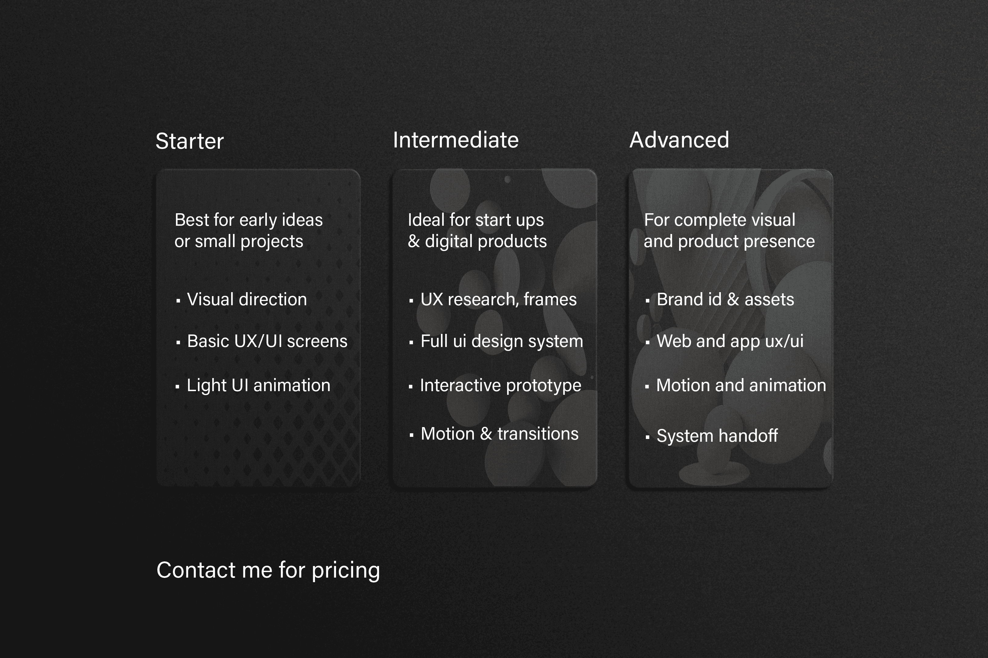 I specialize in creating visually compelling, user-centered digital experiences that balance aesthetics with usability. My work sits at the intersection of graphic design, UX/UI design, and UI animation, helping brands communicate clearly while delivering smooth, intuitive interactions.